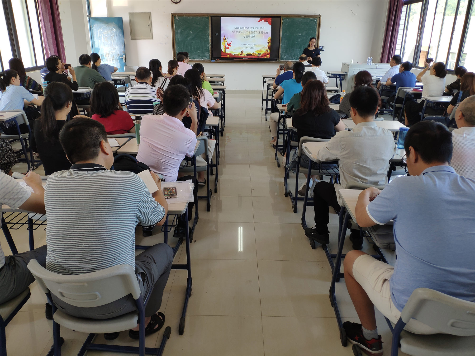 9月25日,必赢官网“不忘初心、牢记使命”党支部书记培训班开班。二级学院师生党支部书记、机关党支部书记、直属党支部书记参加培训。培训班要求党支部书记进一步学懂弄通做实习近平新时代中国特色社会主义思想,全面掌握“不忘初心、牢记使命”主题教育的总体要求、目标任务、重点措施,确保主题教育有序开展、取得实效。
