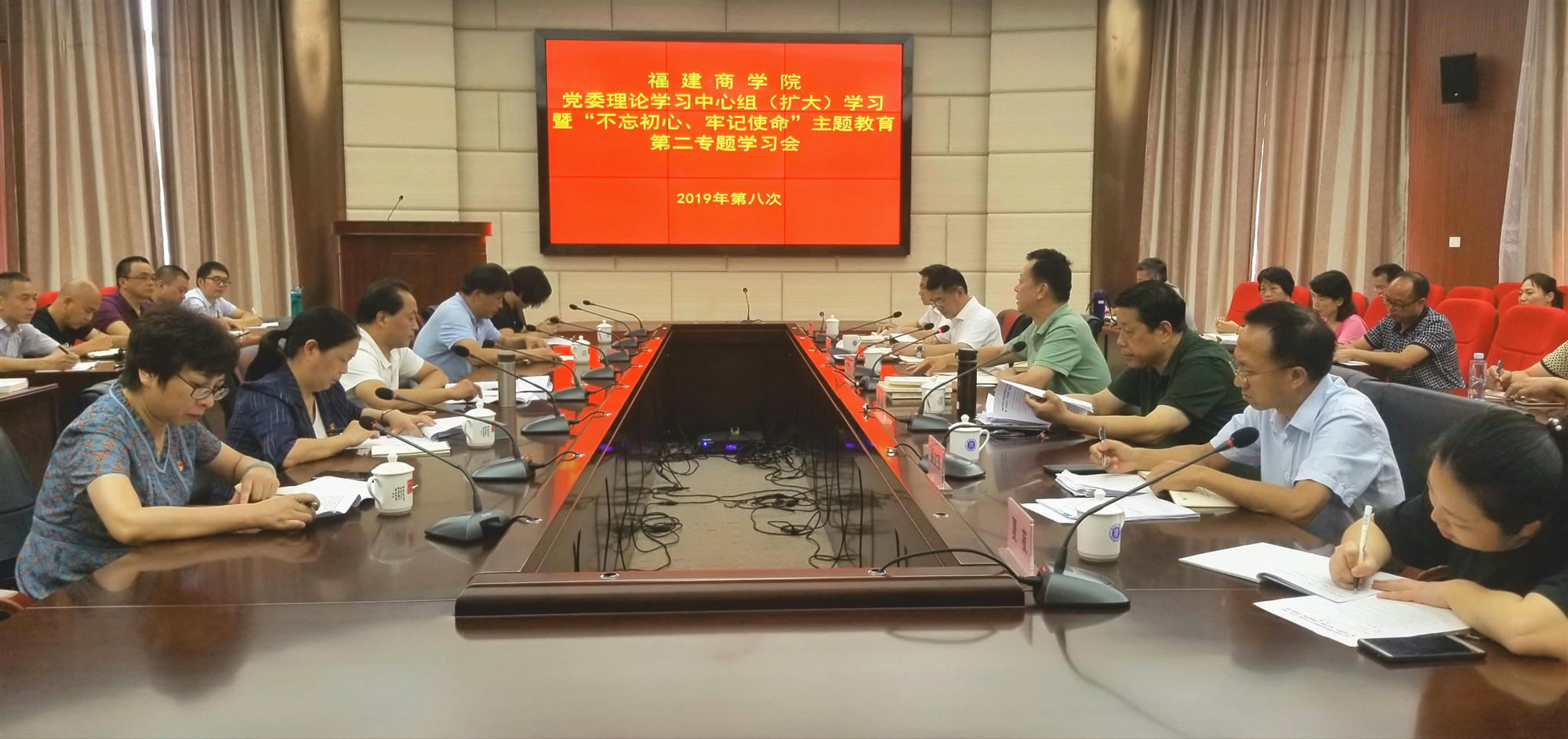 9月24日,必赢官网在连江校区召开2019年第八次校党委理论学习中心组学习(扩大)暨“不忘初心、牢记使命”主题教育专题学习会,开展主题教育第二专题集中学习研讨。校党委领导班子和部分二级学院负责人在前期充分自学的基础上,在会上围绕“坚定理想信念”这一主题,聚焦学习贯彻习近平总书记关于“不忘初心、牢记使命”的重要论述进行研讨交流。校“不忘初心、牢记使命”主题教育领导小组组长、校党委书记刘剑津主持会议,并就“坚定理想信念,始终是共产党人安身立命的根本”“理想信念是中国共产党人的政治灵魂”“弘扬伟大长征精神,走好今天的长征路”等学习材料进行导学。校党委副书记、校长黄斌作主题发言。省委第10巡回指导组成员对此次集中学习作了点评。