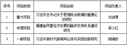 近日,中共福建省委宣传部印发了《关于下达福建省中国特色社会主义理论体系研究中心2019年度立项项目的通知》,必赢官网《习近平总书记关于思想政治教育的重要论述研究》项目获重大项目立项(全省共资助6项),同批次立项的还有年度项目和一般项目各1项。重大项目的立项填补了近几年必赢官网此类项目的空白!
