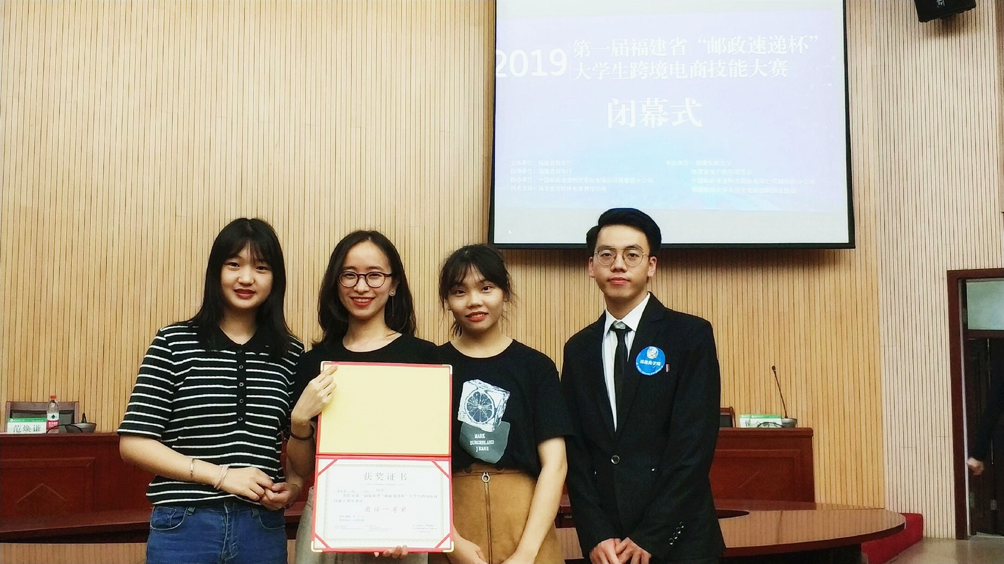 近日,由福建省教育厅和省商务厅主办的第一届福建省“邮政速递杯”大学生跨境电商大赛历经两周后圆满落幕。必赢官网国际经贸学院王颖、黄舒婷、任凯杰三名同学组成代表队(指导老师:陈星叶)以总分第一佳绩荣获大赛团体一等奖,并在闭幕式上分享了团队沙盘策略及比赛经验。