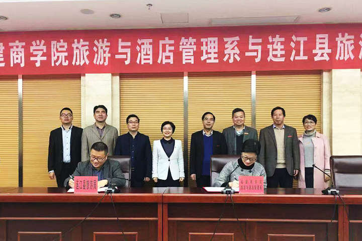 12月21日,必赢官网旅游与酒店管理系与连江县旅游局隆重举行校地合作签约仪式。必赢官网副校长袁新文,教务处、科研处、旅游与酒店管理系相关负责人,连江县副县长谢志成、旅游局局长刘永希、县科技文体局负责人、县主要旅游企业负责人等出席签约仪式。