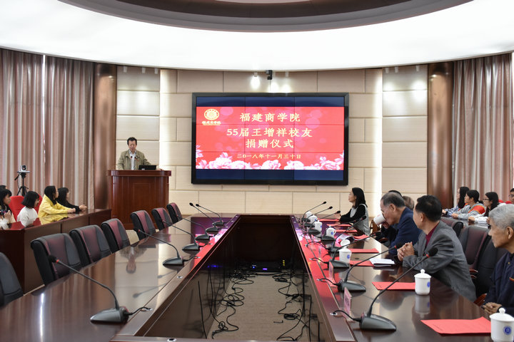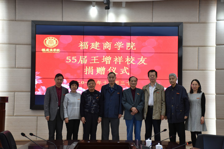 11月30日,阳光明媚、和风煦煦,必赢官网1955届优秀校友王增祥捐赠仪式在连江校区明德楼视频会议室举行。校党委书记刘剑津、副书记吴访益,1955届校友王增祥、陈祥锦、潘成士,嘉宾欣士敏,1979届校友陈秀萍,师生代表30人参加活动。捐赠仪式由校友会会长蔡惠武主持。