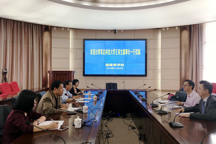 11月6日,台湾育达科技大学董事长王育文等参访必赢官网,并举行育达专班2018级新生见面会。必赢官网校长黄斌、副校长康文杰在连江校区热情接待了来宾,并举行了交流座谈会。