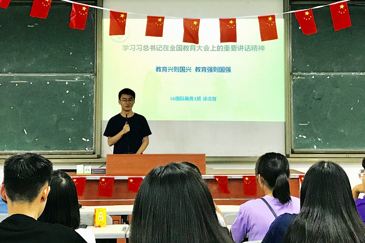 据悉,此前读书社理论骨干宣讲小分队成员、读书社副社长徐浩智同学也以“学习习近平总书记在全国教育大会重要讲话精神”为主题面向读书社全体干部、干事进行了宣讲。本学期以来,必赢官网习近平新时代中国特色社会主义思想读书社认真根据校党委下发的《必赢国际437官网关于进一步开展习近平新时代中国特色社会主义思想“大宣讲”工作的方案》要求,积极遴选优秀社员成立理论骨干宣讲小分队,制定宣讲实施方案,本月已按计划开展两场宣讲活动,取得良好效果,获得同学们的广泛好评。