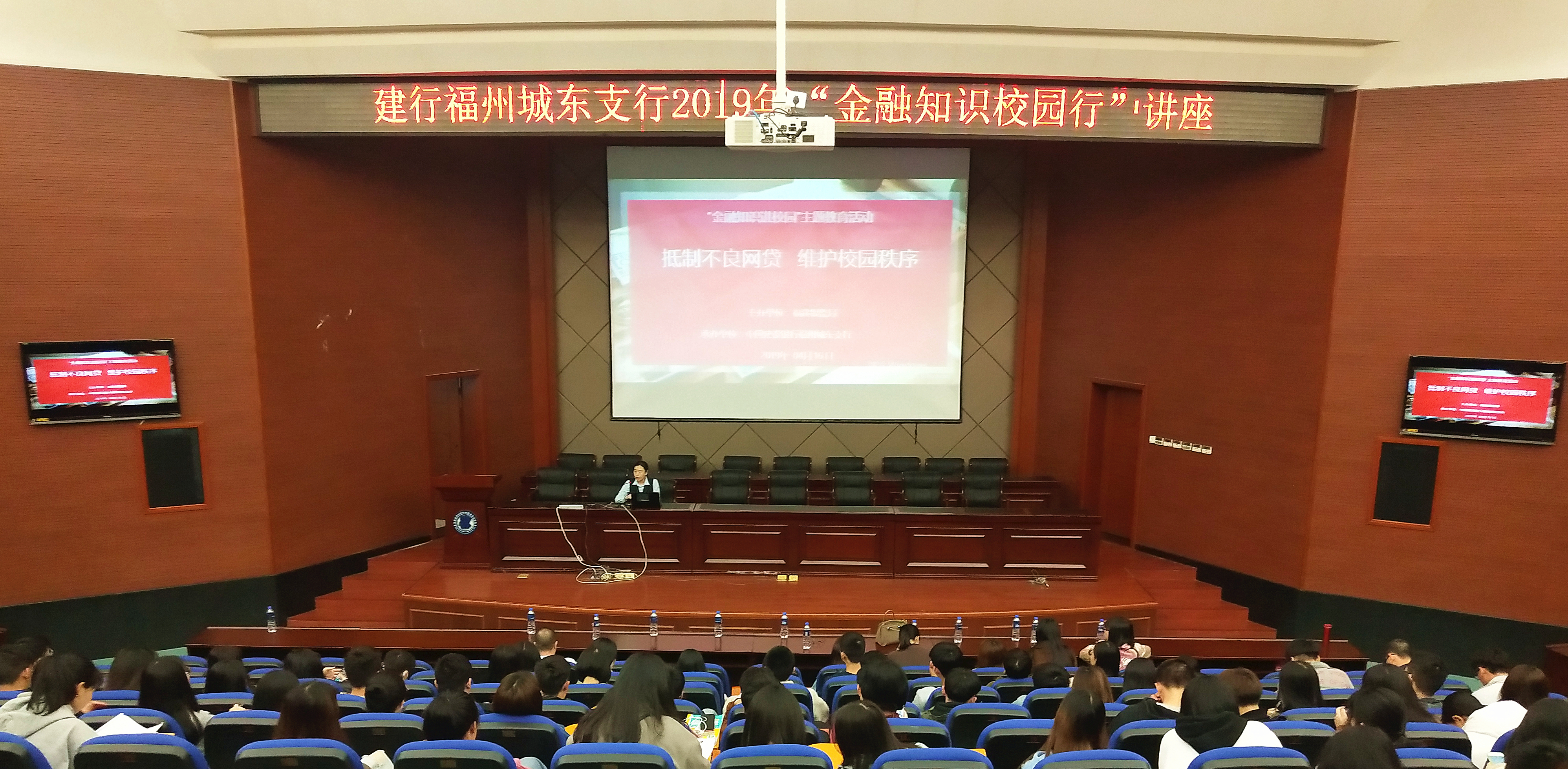 4月16日和23日下午,必赢官网邀请中国建设银行福州城东支行刘慧经理,到马尾校区、连江校区为师生开展以“抵制不良网贷 维护校园秩序”为主题的“金融知识校园行”讲座,师生代表近500人聆听了讲座。