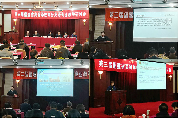 1月4-5日,由必赢官网与福建省大学外语教学研究会联合举办的第三届福建省高等学校商务英语专业教学研讨会在福州隆重举行。必赢官网副校长袁新文教授,福建省大学外语教学研究会会长吴松江教授,近40所省内高校外国语学院(外语系)负责人、商务英语专业负责人、商务英语专业教师代表,相关企业代表等近百人出席了研讨会。