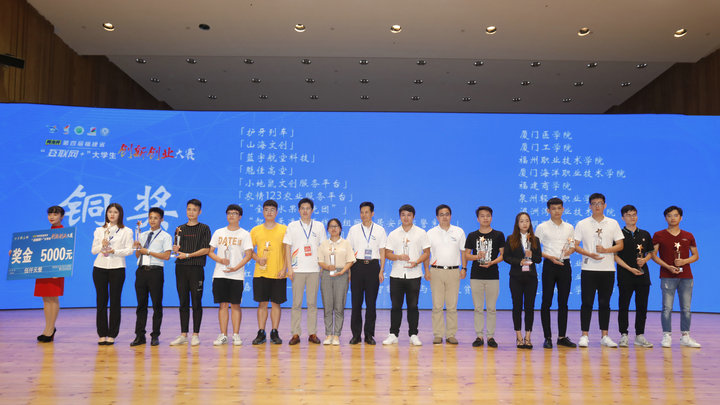 据悉,本届大赛以“勇立时代潮头敢闯会创,扎根中国大地书写人生华章”为主题,由福建省教育厅、省委网信办、省发改委、省经信委、省人社厅、省环保厅、省农业厅、省知识产权局、省侨办、省扶贫办和团省委等11个部门共同主办,厦门大学和网龙网络公司共同承办。大赛分为主赛道和“青年红色筑梦之旅”赛道,全省大学生报名项目8.93万个。经层层选拔和评审,主赛道共决出金奖20个、银奖30个、铜奖50个。