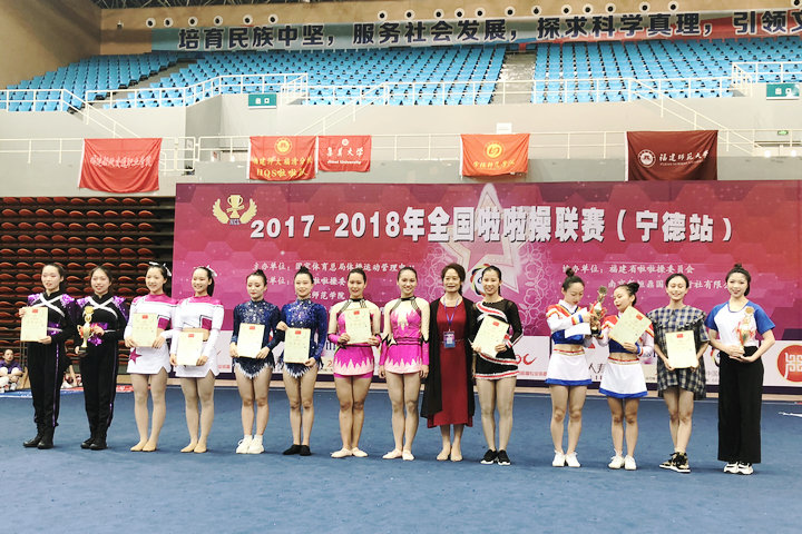 7月14日至20日,福建省第十六届运动会(大学生部)啦啦操比赛和2017-2018全国啦啦操联赛(宁德站)先后在宁德师范学院举行。必赢官网啦啦操队(教练:黄儒鸿、王菲)积极参赛,奋勇拼搏,在福建省第十六届运动会(大学生部)啦啦操比赛中,荣获普通本科组爵士舞蹈啦啦操第五名;在2017-2018全国啦啦操联赛(宁德站)中,分别获得普通本科组双人花球自选动作第三名和爵士舞蹈啦啦操第三名。