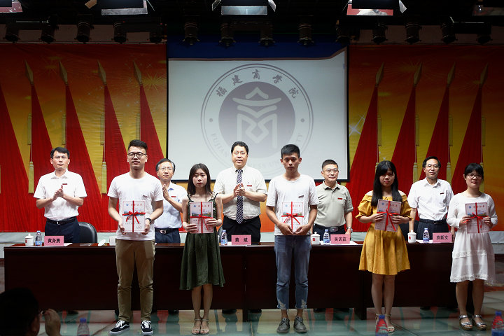校领导为受表彰的毕业生代表颁奖
