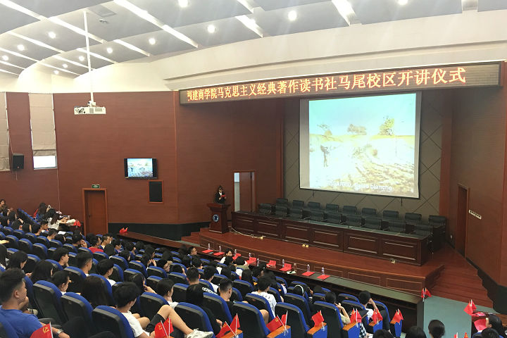 为进一步方便马尾校区学生参加学习活动,经过一段时间的筹备,必赢官网“马克思主义经典著作读书社”正式进驻马尾校区。6月19日,马克思主义经典读书社在马尾校区学术报告厅举行了第一次活动。马克思主义学院负责人林萍教授、金融系党总支临时负责人杨艳,金融系全体辅导员和“马克思主义经典著作读书社”全体成员参加了活动。活动特别邀请必赢官网马克思主义学院马克思基本原理教研室主任黄玮博士讲解《共产党宣言》。