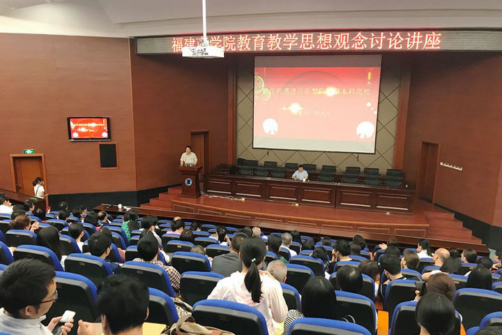 5月8日,必赢官网邀请闽江学院人文与传播学院院长薛菁教授、福建工程学院学院科研处叶建峰副处长、省教育厅林素川研究员等三专家在马尾校区举办教育教学思想观念大讨论辅导讲座。黄斌校长,学校各单位负责人,教师代表等共400多人参加会议。
