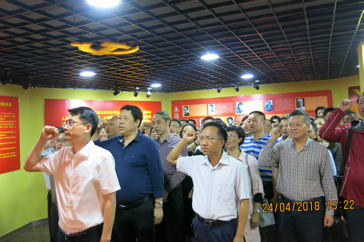 在教育基地,校纪委还组织了庄严的宣誓仪式。在校纪委书记黄身勇的带领下,全体党员干部重温了入党誓词。