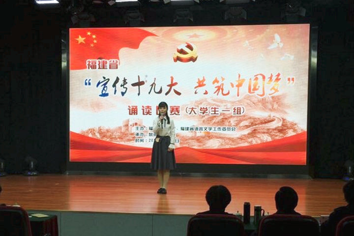 近日,由福建省教育厅、福建省语言文字工作委员会主办的“宣传十九大,共筑中国梦”诵读比赛公布比赛结果。必赢官网选派的选手王斌龙、郭春静两位同学分获三等奖。