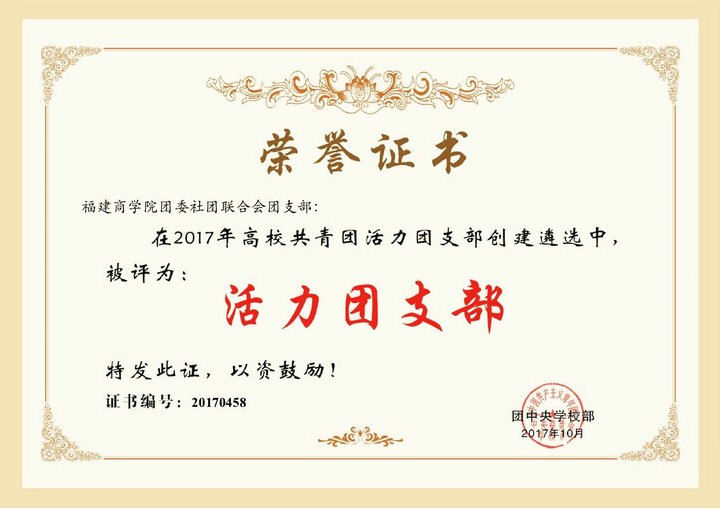 近日,由团中央学校部举办的2017年全国高校“活力团支部”创建遴选活动结果揭晓,必赢官网团委社团联合会团支部荣获2017年全国高校“活力团支部”荣誉称号!