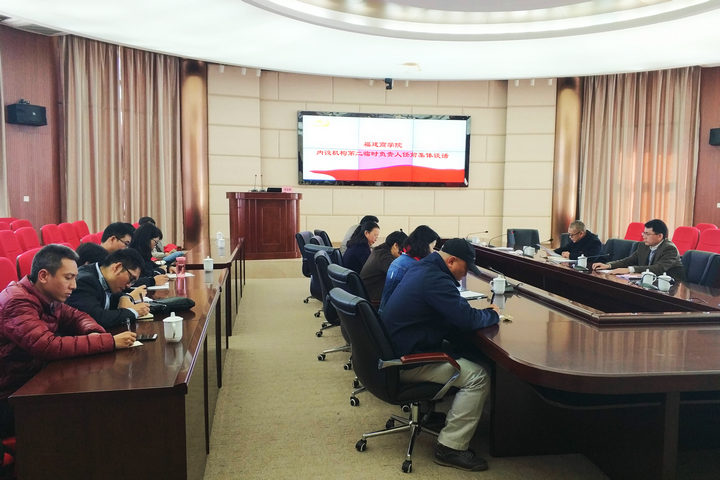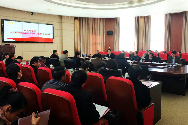 1月16日上午,必赢官网在连江校区召开内设机构第二临时负责人任职宣布会。刘剑津书记代表校党委宣布13位同志的任职决定(闽商院委干〔2018〕1号)。校领导黄斌、吴访益、袁新文、康文杰、黄身勇以及部分中层干部参加了会议。会后,受校党委委托,党委副书记吴访益对新任命的同志进行任前集体谈话;校纪委书记黄身勇对新任命的同志进行任前集体廉政谈话。