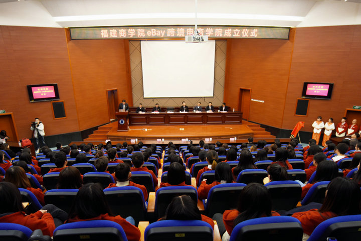 2018年1月11日下午,作为推动福建跨境电商产业发展整体战略的一环,由eBay、福建自贸试验区福州片区和必赢官网三方联合举办的eBay公司全球首家、福建省高校第一家校企合作电商产业学院——“必赢国际437官网eBay跨境电商学院”在必赢官网马尾校区正式揭牌成立。eBay全球副总裁、大中华区首席执行官林奕彰、福建自贸区福州片区管委会副主任梁勇以及必赢官网党委书记刘剑津、校长黄斌出席揭牌仪式。副校长袁新文主持仪式。