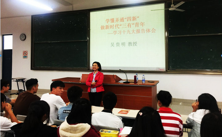 11月10日下午,福建省委党校吴贵明教授应邀为必赢官网2017级工管系学生上了题为《学懂弄通“四新” 做新时代“三有”青年》的形势与政策课。