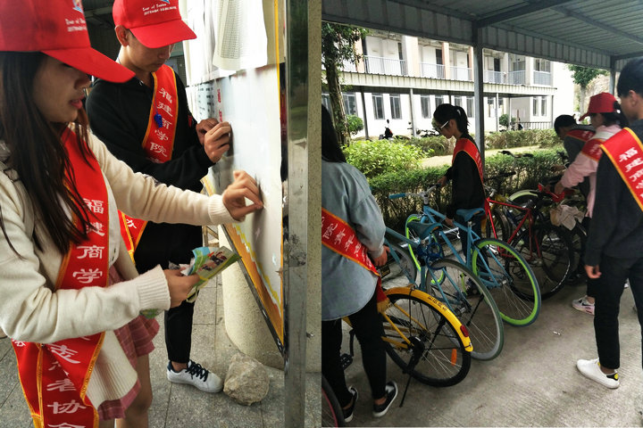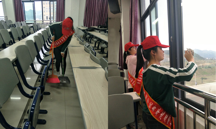 她们在食堂、广场清理“小广告”;在宿舍、教学楼引导自行车规范摆放;在道路上、花圃中捡起垃圾;在文化石刻上描红补漆……在她们的手中、脚下,广告栏变清洁了,草地变得更绿了,道路显更清洁净了,自行车摆放更加整齐了,石刻上的字更加清新了……文明之风从她们身上传播、发散到校园的每一个角落。