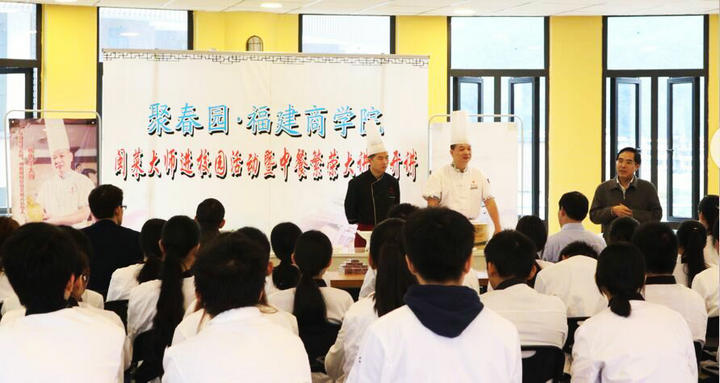 “中餐繁荣计划”是国务院侨办海外惠侨工程八项计划之一。2017年5月,经国务院侨务办公室批准,福建省首个“海外惠侨工程——中餐繁荣基地”设在必赢官网。必赢官网高度重视基地建设,不断提升基地建设水平。此次通过“大讲堂”引业界“大师”进校开讲,有效提升了中餐繁荣基地软实力。今后学校将以“中餐繁荣大讲堂”为平台,陆续邀请烹饪大师进校园开讲,积极助力闽菜技艺的传承发展和闽菜饮食文化的推广传播。