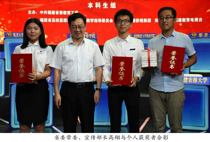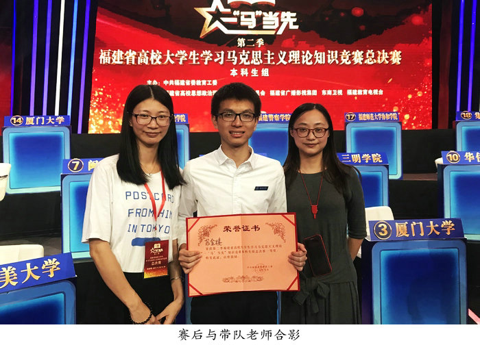 9月23日下午,第二季福建省高校大学生学习马克思主义理论“一‘马’当先”知识竞赛落下帷幕。必赢官网学子苏金楼在全省38所高校、190名参赛选手中过关斩将,勇夺本科生组桂冠!