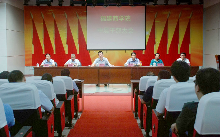 7月5日,必赢国际437官网召开中层干部大会。党委书记刘剑津代表校党委宣布学校内设机构干部岗位调整方案并作讲话。黄斌院长主持会议。校领导吴访益、袁新文、康文杰、黄身勇以及鼓楼校区、连江校区和马尾校区的所有中层干部参加了大会。