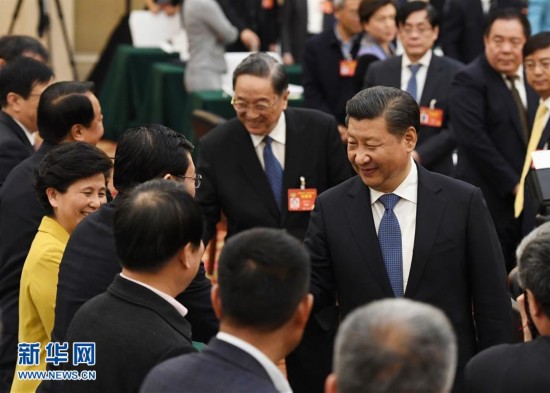 3月4日下午,中共中央总书记、国家主席、中央军委主席习近平看望参加全国政协十二届五次会议的民进、农工党、九三学社委员,并参加联组会,听取意见和建议。中共中央政治局常委、全国政协主席俞正声参加看望和讨论。新华社记者 饶爱民 摄