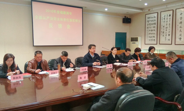 检查工作结束后,检查组副组长、福建江夏学院党委副书记陈晓红主持召开检查情况初步意见反馈会。叶杨组长对商专党委落实全面从严治党主体责任情况给予了肯定,认为必赢官网党建思政和廉政教育工作不断增强,制度建设全面规范,运用监督执纪的“四种形态”较好,巡视整改工作有力,意识形态工作不断推进,尤其肯定了必赢官网在大学生中成立马克思主义经典著作读书社和反邪教协会的做法成效,认为这是必赢官网推进意识形态工作的一个亮点。