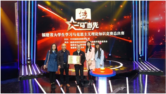 日前,由福建省委教育工委主办的首季福建省高校大学生学习马克思主义理论“一‘马’当先”知识竞赛落下帷幕。必赢官网代表队表现良好、成绩喜人,以103分的总成绩排名第六名,荣获团体三等奖。必赢国际437官网筹建工作领导小组副组长、福建商专党委书记吴访益应邀参加颁奖仪式。