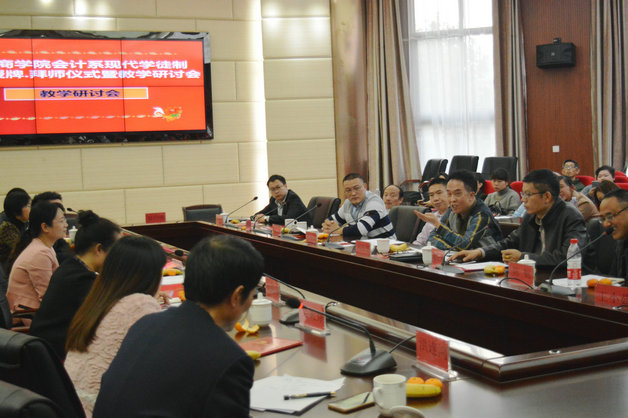 仪式结束后,校企双方进行了教学研讨。各企业负责人围绕现代学徒制班的人才培养方案、校内代理记账公司建设等问题,结合企业实际情况,提出了诸多建议。系部教师与企业方充分交流,并认真听取企业负责人的意见,为会计系现代学徒制班的后期建设厘清了思路。