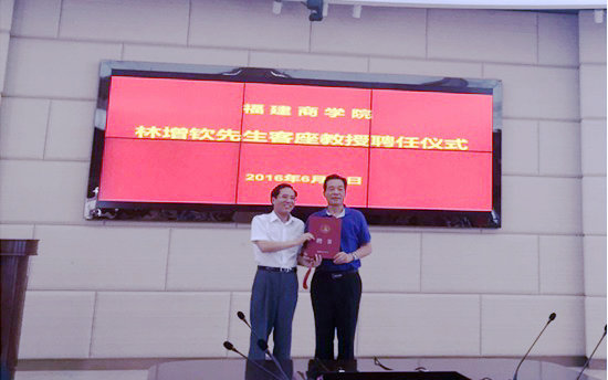 袁新文校长为林增钦先生颁发客座教授聘书