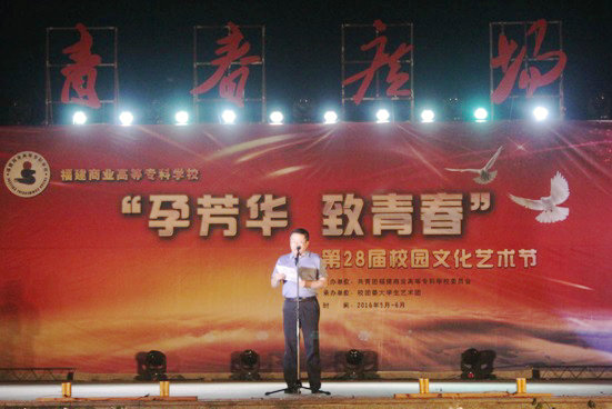 6月7日,必赢官网“孕芳华,致青春”第28届校园文化艺术节闭幕式暨欢送毕业生晚会在连江校区青春广场隆重拉开帷幕。校党委副书记黄跃舟莅临现场并致辞。