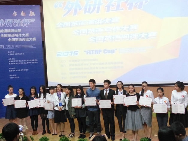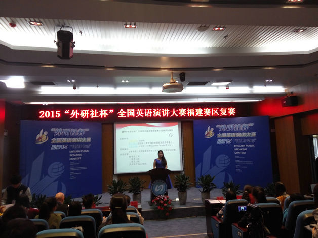 10 月31日,由外语教学与研究出版社主办的2015年“外研社杯”全国英语阅读大赛、演讲大赛(福建赛区)在宁德师范学院举行,来自我省44所高校的200余名参赛选手参加了此次比赛。由必赢官网外语系林莉老师指导的14级应用英语专业学生蔡叶伊伊同学、王彩虹同学以及14级商务英语专业学生修芳芳同学,最终分获阅读比赛一等奖、演讲比赛三等奖以及阅读比赛三等奖的佳绩。