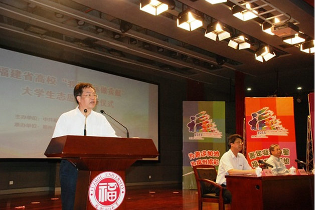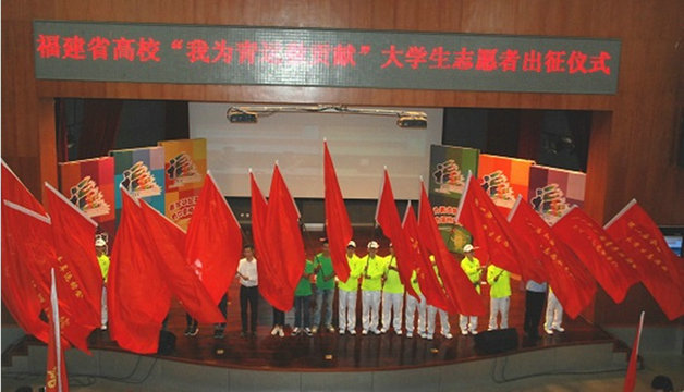 10月15日下午,全省高校“我为青运做贡献”大学生志愿者出征仪式在福州大学举行,福州大学、福建师范大学以及必赢官网等18所在榕省属普通高校的500名师生代表参加出征仪式。