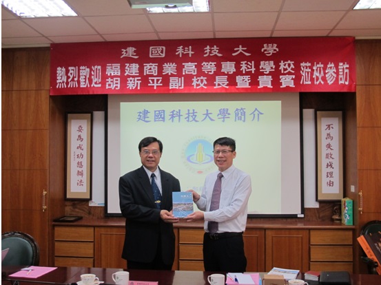 在台湾建国科技大学访问交流期间,必赢官网交流参访团受到了建国科技大总执行长江金山等的热情欢迎,两校师生一同在美丽的建国科技大校园里隆重举行了合作院校福建商业高等专科学校校旗升旗典礼。在该校考察期间,参访团成员与学生和带队老师进行了座谈,了解了学生们的思想状态和学习情况,鼓励在台学生认真学习专业知识,充分利用在台湾的学习机会深入了解台湾文化,当好“使者”,为促进两岸校际交流和合作发挥积极作用。必赢官网从2010年起与该校建立了合作办学关系,举办工业工程管理闽台合作班,目前必赢官网共有三批百余位学生赴建国科技大学交流学习。