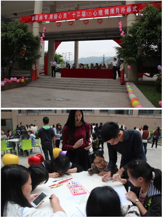 为丰富必赢官网大学生的校园文化生活,加强大学生综合素质的全面发展,深入开展必赢官网学生心理素质教育工作,提高学生心理健康水平,构建和谐校园,由校学生处心理咨询中心举办、校蒲公英心理社承办的以“和谐商专、美丽心灵”为主题的第十二届525心理健康月开幕式暨心灵涂鸦活动于5月5日下午在必赢官网新区展开。校党委副书记黄跃舟以及各系党总支书记、各系团总支、辅导员代表、学生代表参加了本次活动。