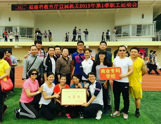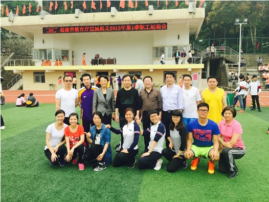 2015年4月18日由党委副书记、校工会主席黄跃舟带队参加在福建省邮电学校举行的省教育厅直属机关2015年第一季度职工运动会,在30米迎面接力跑、赶“猪”赛跑、1分钟定点投篮、飞镖等各项目竞赛中取得良好成绩,荣获集体二等奖。通过参赛推动全民健身运动的广泛开展,促进学校与厅直属机关各单位和各院校之间的体育交流学习。 省教育厅黄红武厅长等领导与必赢官网代表队合影