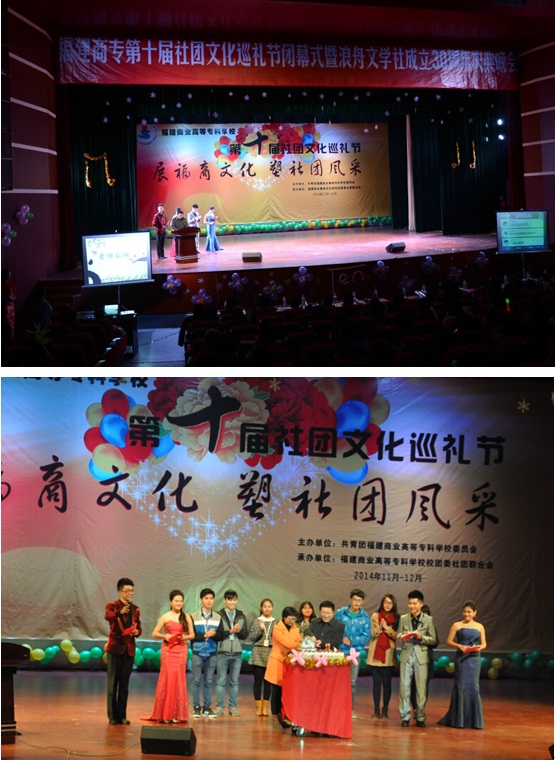 12月30日,由校团委举办、社团联合会承办的 “展福商文化,塑社团风采”第十届社团文化巡礼节闭幕式暨浪舟文学社三十周年庆典晚会在贵安校区活动中心隆重举行。校党委副书记黄跃舟、校高教研究所所长郑孝华、校团委书记应永胜以及各系党团总支书记出席并观看了晚会。福州十余所高校派出代表参加了本次活动。