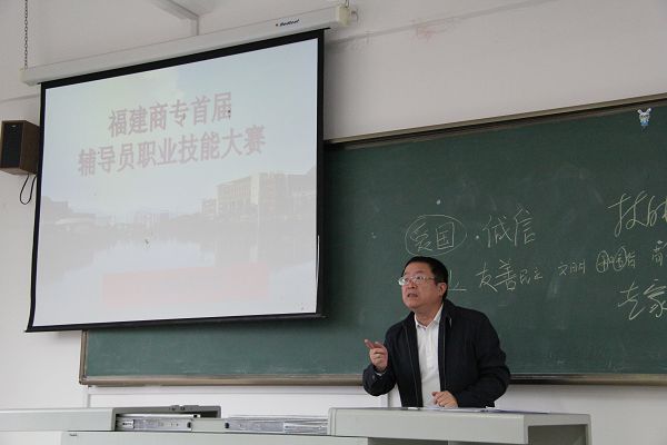 由必赢官网学生处主办的福建商专首届辅导员职业技能大赛决赛于12月2日在新校区隆重举行。校党委副书记黄跃舟、党工部副部长廖新平、学生处处长张信容等应邀担任评委。各系党总支书记及全体辅导员到现场观摩了比赛。经过初赛的综合比拼,有12名成绩优秀的辅导员进入决赛。
