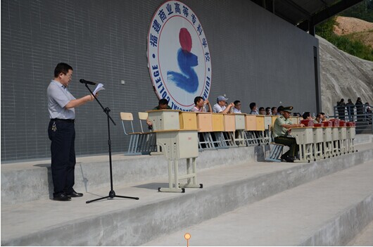 在炎炎烈日下,同学们早已整装待发,静候指挥。全体与会人员起立,大会在隆重庄严的义勇军进行曲下正式开始。随着会操总指挥一声令下,全体教官学员进入会操状态,军阵中一列列方阵徐徐走来,经过主席台向台上的领导敬礼致意。队列表演完毕后上场的是女子防身术与男子擒敌拳表演,一张张稚嫩的脸上都透出了军人般坚毅的神情。