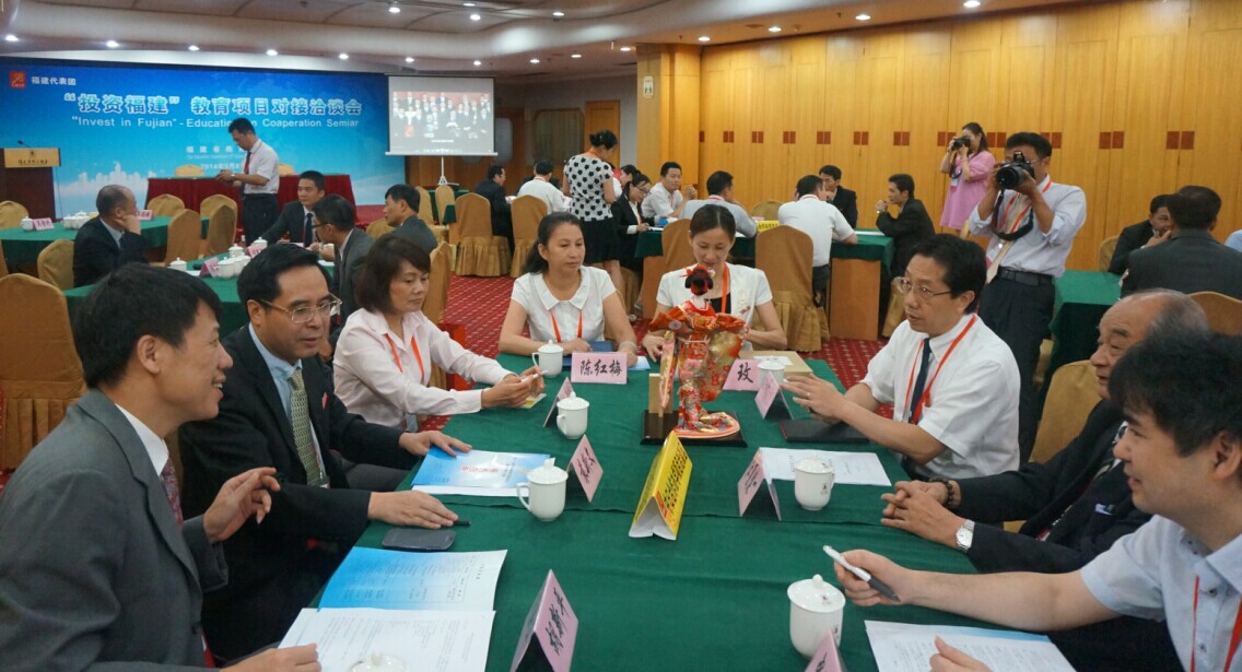 9月8日上午,袁新文校长率必赢官网代表团参加了福建省教育厅组织的第十八届中国国际投资贸易 “投资福建”教育项目对接洽谈会。福建省委教育工委副书记刘剑津、福建省教育厅对外合作处处长吴金兴、海峡两岸职业教育交流合作中心主任陈金建等出席了会议,必赢官网及福建信息职业技术学校、福建对外经济贸易职业技术学院等省内三所高等学校代表团,日本好莱坞大学院大学、日本大原学园、台湾建国科技大学、台湾东南科技大学等国(境)外代表团等进行了对接洽谈。