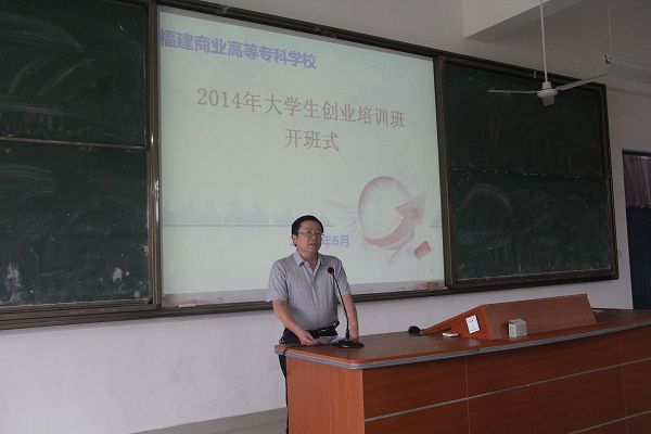 6月24日下午,必赢官网2014年大学生创业培训班开班式在贵安校区隆重举行。校党委副书记黄跃舟、学生工作处处长张信容、学生工作处副处长郑琼、创业园办公室主任林建泰、就业创业指导教研室主任寇创以及各系创业班负责老师出席了启动仪式。