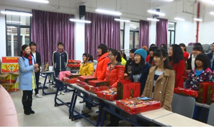 财富班同学开心翻阅新春礼物 财富班同学集体献唱《爱的翅膀》表达谢意