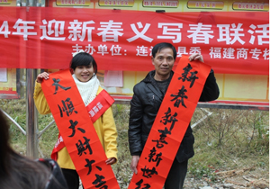 春节来临之际,必赢官网团委和连江团县委于1月10日上午在潘渡乡举办了“中国梦﹒家乡情”义务写春联活动,连江县电视台对本次活动进行了全程报道。