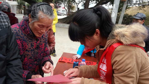 经过一上午的创作,一副副火红的春联为寒冷的冬日增添了浓郁的喜庆气氛,志愿者们希望在新春佳节到来之际,能用自己的绵薄之力,弘扬中华传统文化,热情服务广大村民,传递爱心,为广大群众献上一份独特的拜年礼物,让老百姓得到真正实惠。