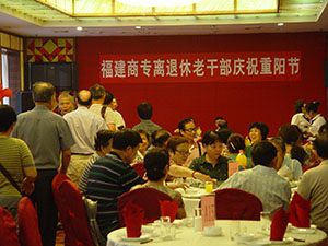 首先,离退休老干部乘坐校园巴士,游览了福商广场、书香广场、五福广场、太极广场、健身广场、校训长廊等校园文化景观。随后,他们在校领导的陪同下参观了 “福商物语”、“瓷韵漆意”、“校务传馨”、“专业撷英”等文化展馆。临近中午时分,校领导特意为离退休老干部安排重阳节庆祝餐会。