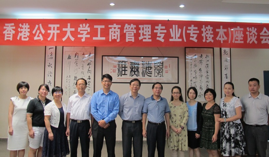 10月9日上午,香港公开大学李兆基商业管理学院叶耀强院长、全日制课程主任简志南博士、全日制课程行政主任钟碧珊博士在福光基金会秘书长韩守真的陪同下来必赢官网考察交流。随后,在校会议室召开香港公开大学、福光基金会与必赢官网联办工商管理专业(专接本)座谈会。必赢官网校长袁新文教授、副校长吴贵明教授及校长办公室、外事办、招生办、工商管理系、外语系等科室系部的相关人员参加了座谈会。