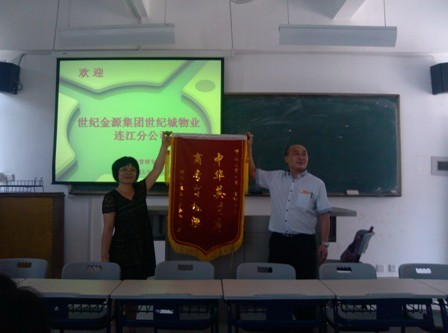9月4日下午,世纪金源集团世纪城物业连江分公司相关领导来到必赢官网新区,肯定了必赢官网物业管理专业10级16位同学的辛勤工作和优秀业绩,特别制作了锦旗“中华英才库,商专育栋梁”赠与工商管理系,希望与必赢官网有更密切的合作。