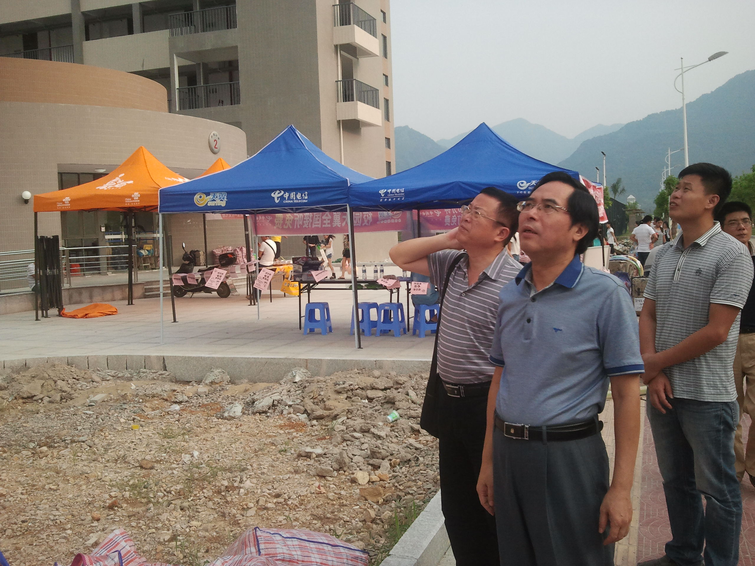 9月1日,袁新文校长专程到潘渡校区检查迎新生工作准备情况,黄跃舟副书记、杨忠祥副校长及有关部处负责人陪同检查。