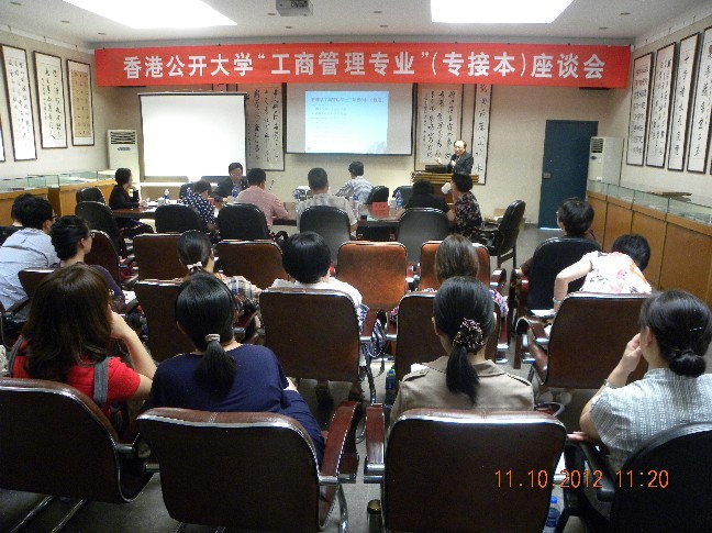 2012年10月11日,香港公开大学李兆基商业管理学院院长叶耀强教授率课程主任梁子冲博士、课程行政助理李洁灵女士,一行3人来必赢官网交流香港公开大学“工商管理专业”(专接本)的办学情况。
