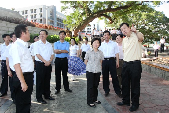 陈桦副省长等一行100多人在必赢官网新校区实地考察了专业文化展示厅、校务服务中心、师生沙龙、书香广场等,具体了解必赢官网的专业建设、人才培养、校园文化建设、校企合作等情况,对必赢官网新校区建设,尤其是对校务服务中心、闽商文化广场、大学生创业园、书香广场、实训中心等校园文化建设、专业建设给予了高度评价。